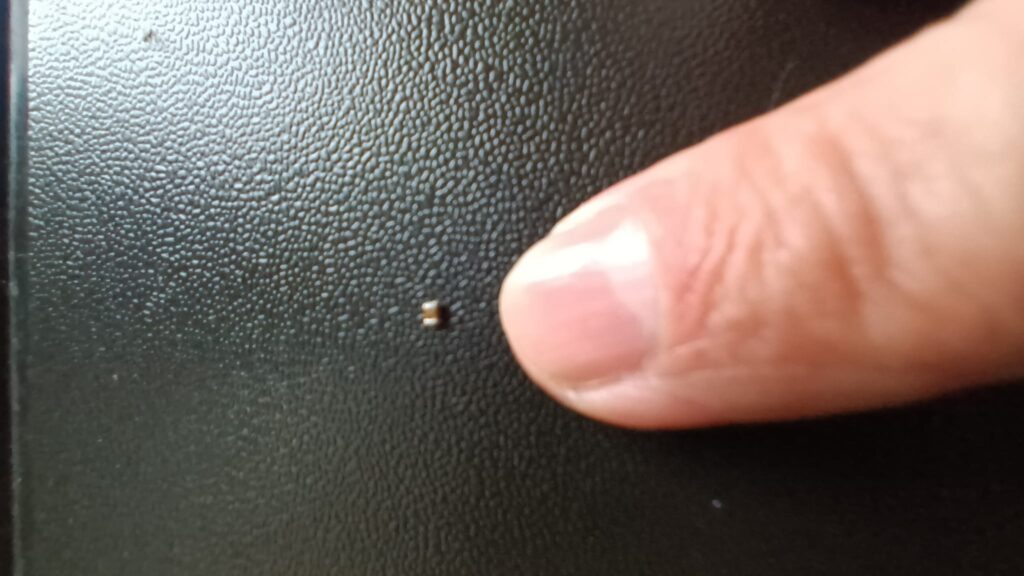 Ce n’était pas un fusible classique, mais un composant CMS, soudé en surface, mesurant environ 1 mm sur 1,5 mm.